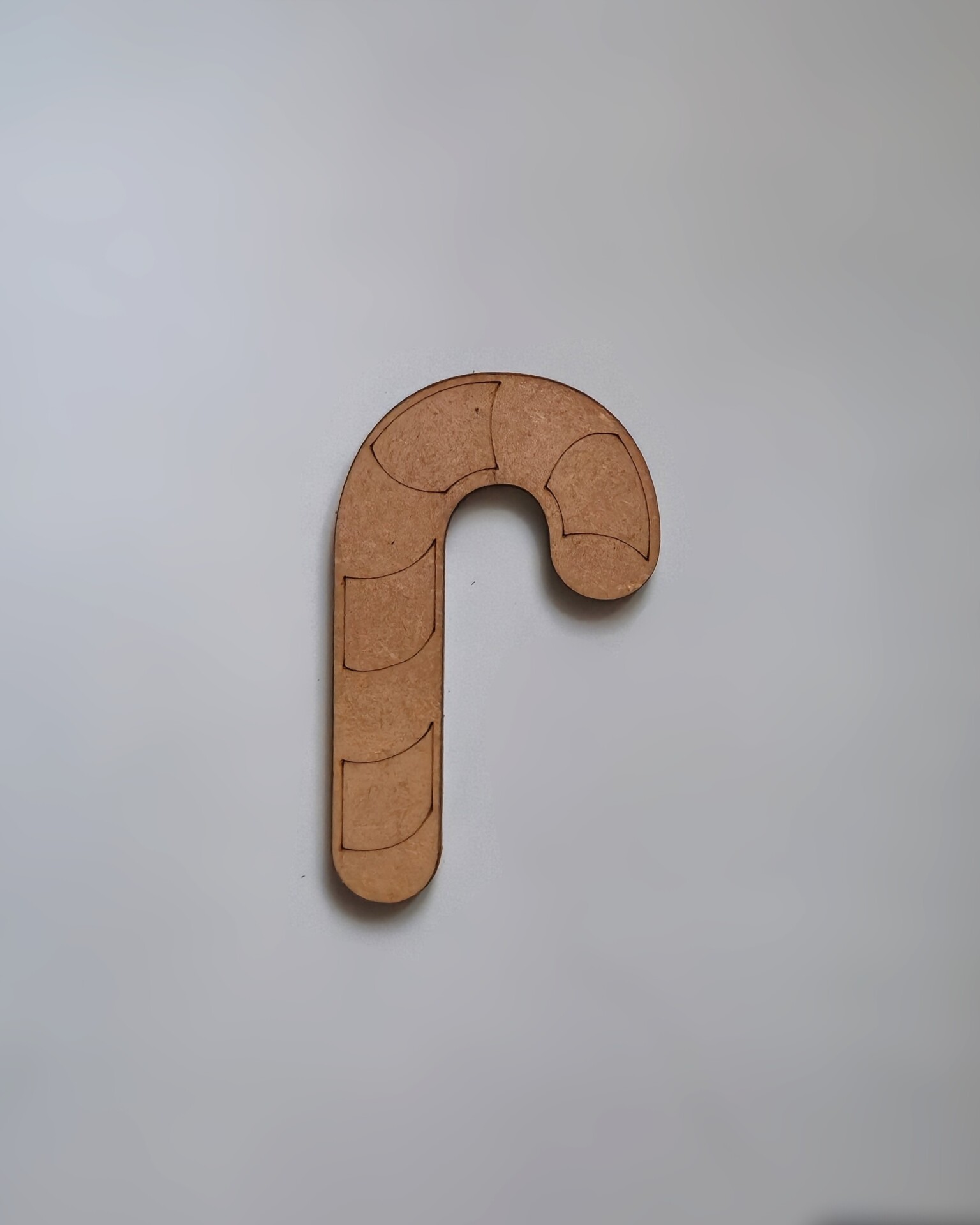 Ornament modular din lemn, în formă de baston de Crăciun oferind un design jucăuș și versatil. Ideal pentru decoruri creative, ambalaje tematice sau proiecte handmade cu aer festiv.
