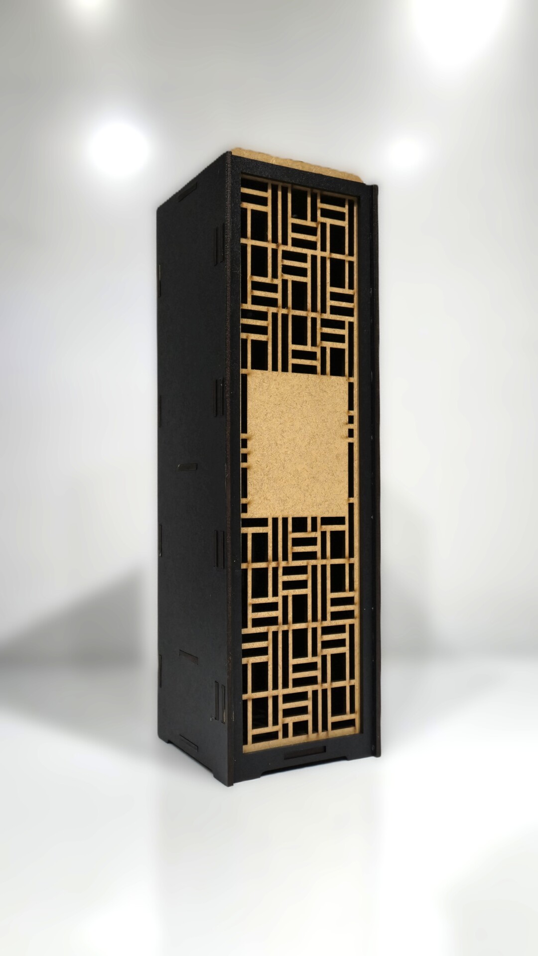 Cutie de vin în culoare negru mat cu fațetă lăcuită cu lac transparent.