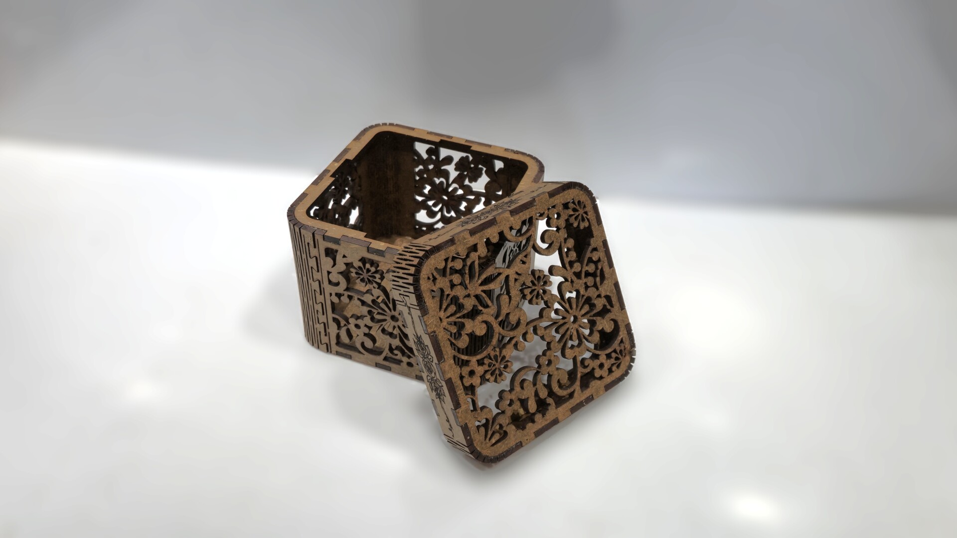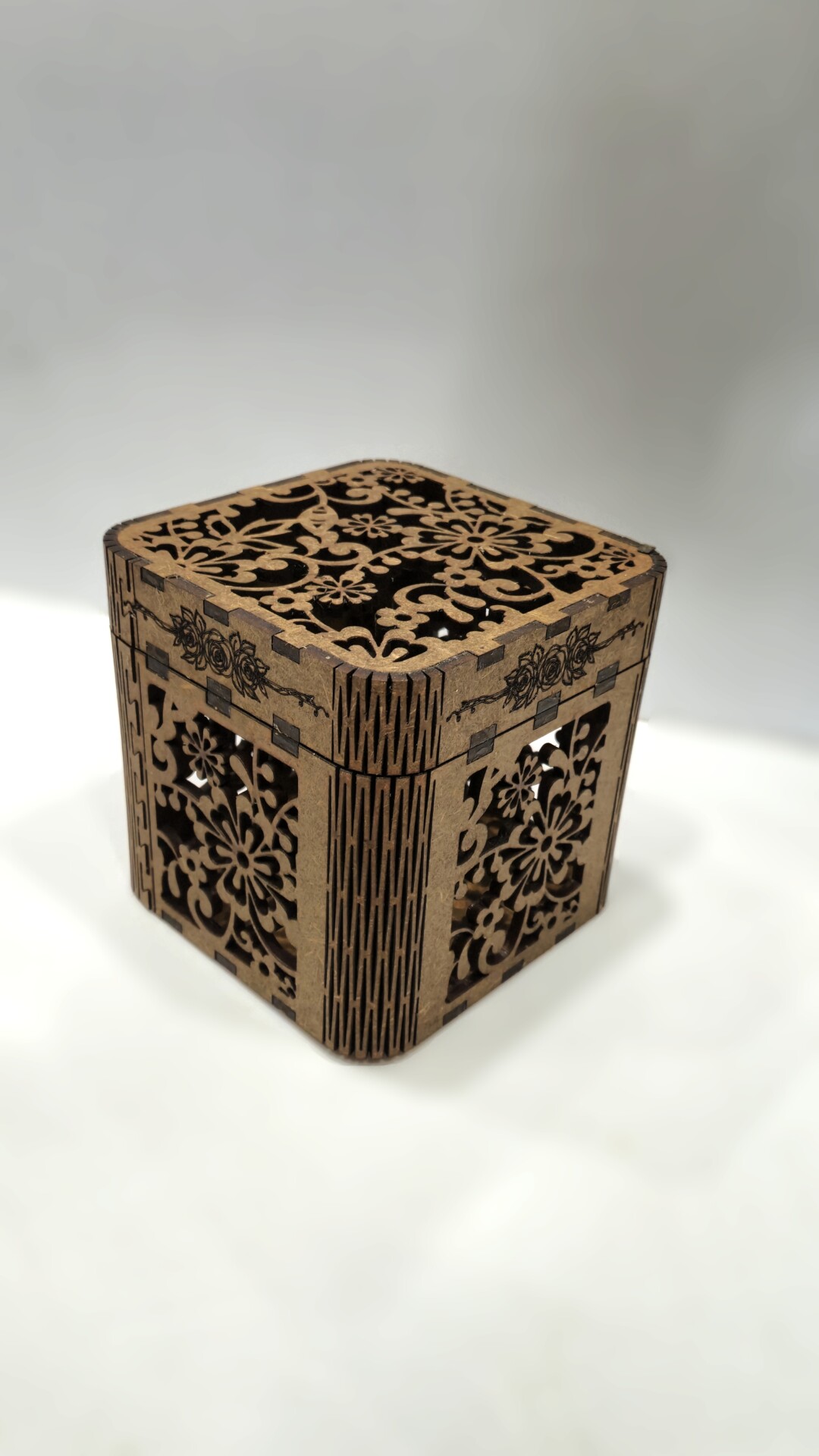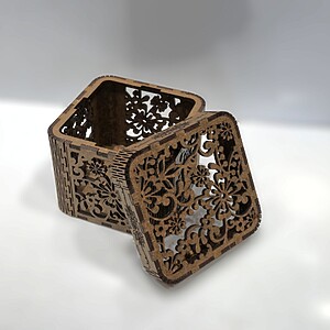 Eleganță clasică într-un design floral simetric. Cutia “Arabesque” impresionează prin decupajele sale fine, inspirate din motive orientale, care creează un joc subtil de lumină și umbră. Fiecare față este decorată cu un model floral armonios, perfect pentru ambalarea cadourilor rafinate sau pentru decorarea spațiilor interioare.