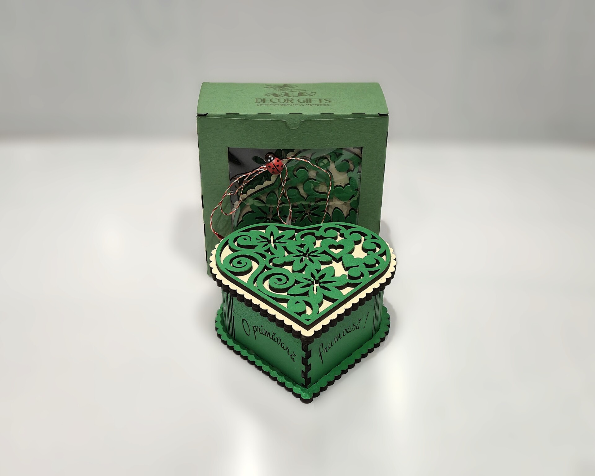 Mărţişor imioară verde- model floral Mărțișor inimioară verde model...