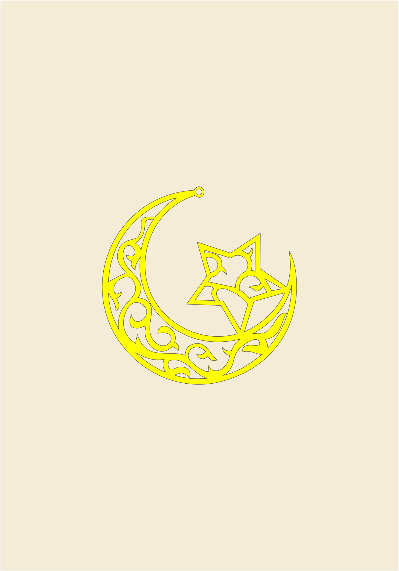 🔸 Design simbolic și ornamental – Semilună și stea decorate cu motive florale și curbe elegante, într-o compoziție simetrică și rafinată.