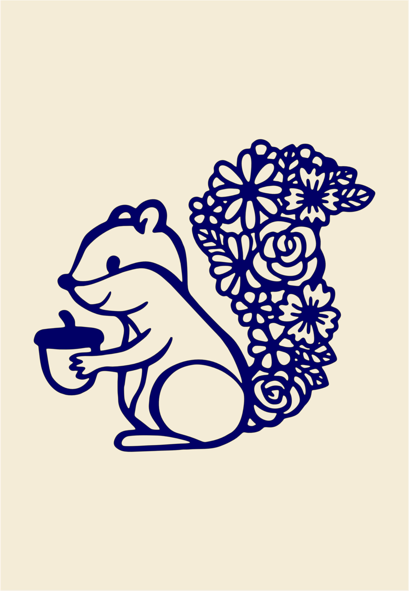 🔸 Design animalier cu accente florale – Veveriță stilizată cu coadă formată din trandafiri, margarete și alte flori, într-o compoziție echilibrată și decorativă.